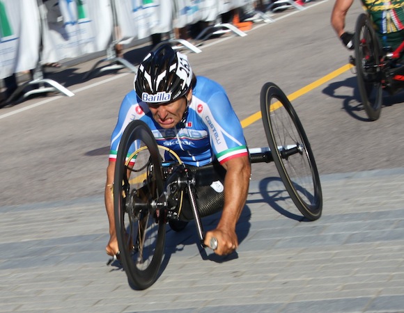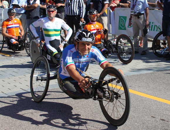 Que penser et que dire, en plus, d’atllètes adulés comme Alessandro Zanardi, ancien pilote de F1 qui a failli laisser sa peau sur le bitume, et qui revient hanter les paracyclistes de sa catégorie. Cet homme, généreux, plein d’attention pour le public… et les journalistes, aurait pu rester chez lui, confortablement assis sur ses succès (et revenus) antérieurs. Mais non, il a choisi de vivre pleinement, deux jambes en moins.